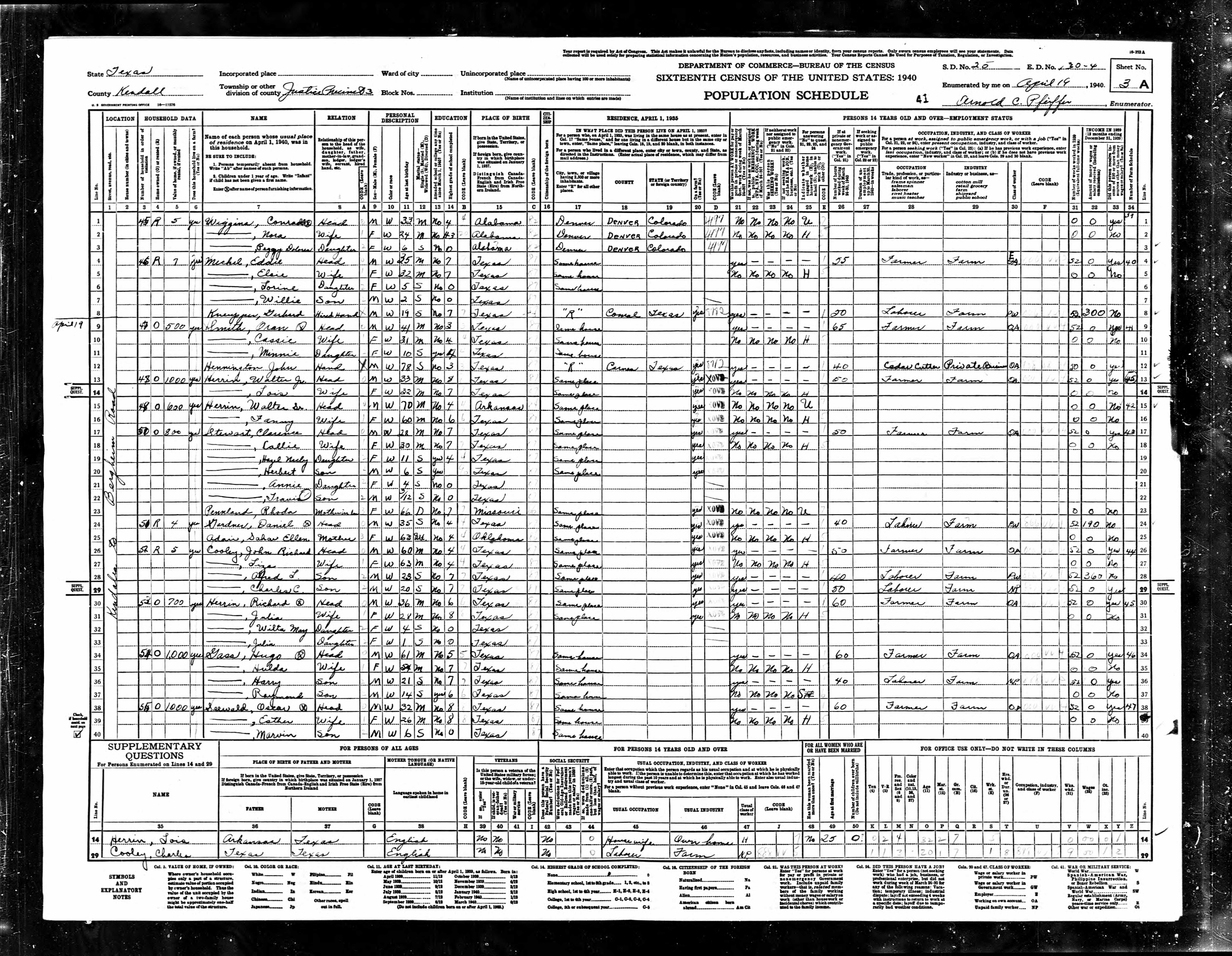 Kendall, Texas. He was the son of