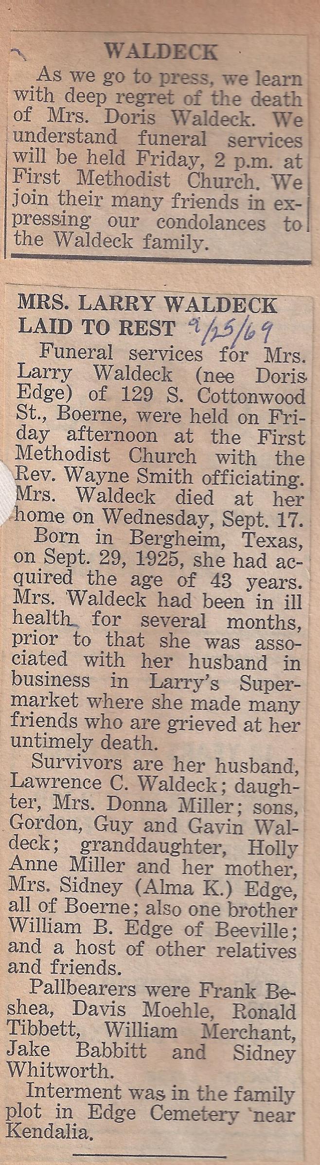 Donna Lea Waldeck who married Jimmy Irwin Miller (1942 - living) on 6 Aug 1966;