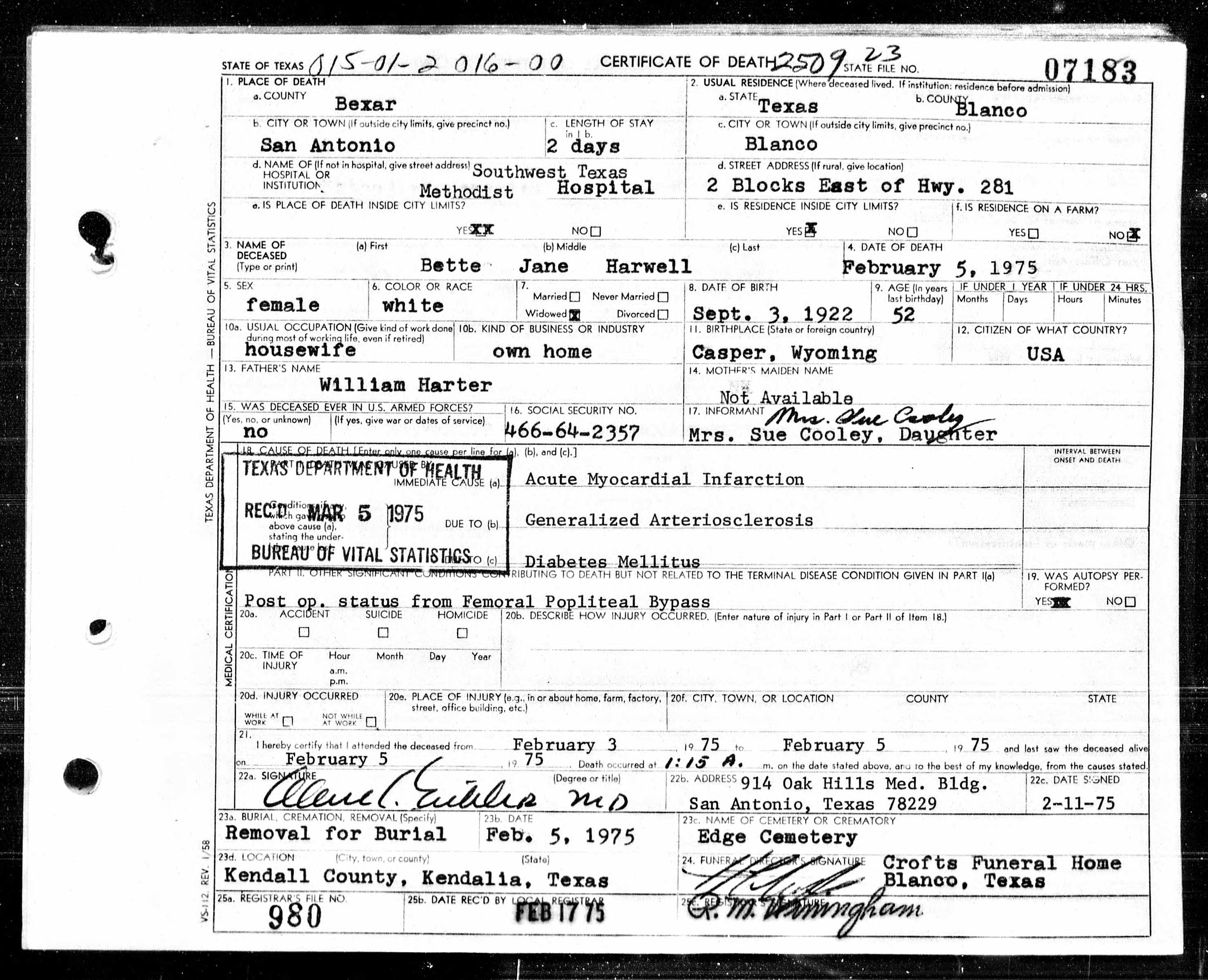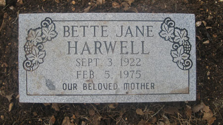 Susan "Sue" Harwell (1944 - living) who married Willie Ray "Bill" Cooley (1944 - living); and