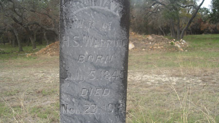 Virginia R Warring was born in Texas on 5 Jul 1847 and died in Kendalia, Kendall, Texas on 23 Nov 1918.