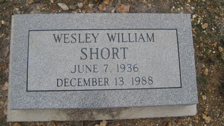 Wesley William Short was born in Kendall County, Texas on 7 Jun 1936 and died in Moore, Frio, Texas on 13 Dec 1988. He was the son of Oran Wesley Short and Leila Kate Benton Short.